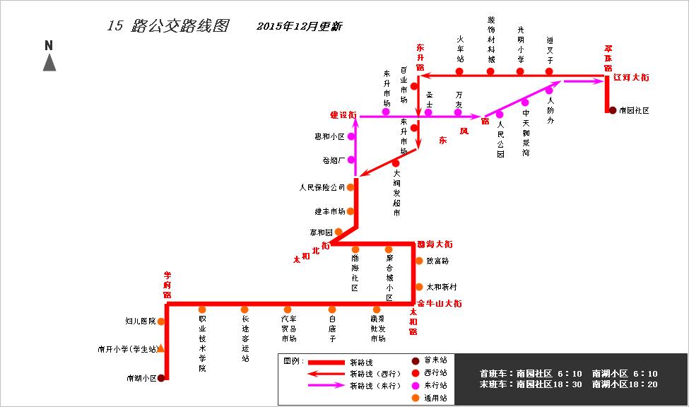 近期,由于市交管部門對(duì)東升路、東方路取消了單項(xiàng)通行禁令,結(jié)合現(xiàn)行公交線路走向布局,營(yíng)運(yùn)部門與承包車主協(xié)商后報(bào)請(qǐng)公司同意,從2015年12月6日起,對(duì)公交15路線路走向進(jìn)行局部調(diào)整,具體情況如下: