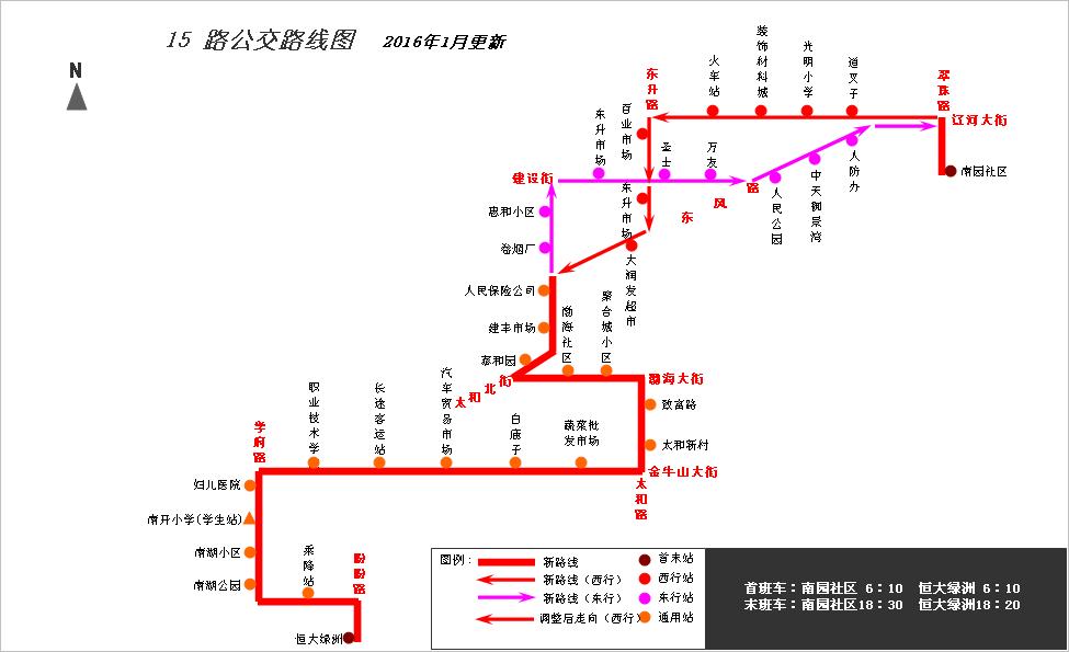 根據(jù)公交線路覆蓋區(qū)域要求,結合承包車主提出申請,為方便青花大街與盼盼路交匯處以南附近小區(qū)居民乘坐公交出行,經(jīng)公司研究,從2016年1月26日起,對公交15路線路走向進行局部調(diào)整,具體情況如下: