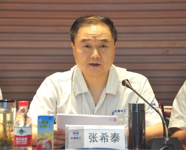 長城電工總經(jīng)理張希泰代表經(jīng)營班子做了題為《搶抓機遇謀發(fā)展,全力以赴抓落實》的中期經(jīng)營工作報告。