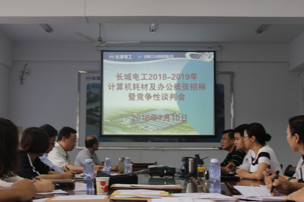 2018年7月10日,長城電工辦公用紙張及計(jì)算機(jī)耗材招標(biāo)暨競爭性談判會在物流公司召開。本次招標(biāo)按長城電工招標(biāo)專家?guī)旃芾磙k法,抽取了5位評標(biāo)專家, 3位物資使用公司代表參加,8家投標(biāo)方代表及工作人員共計(jì)20余人參加會議。